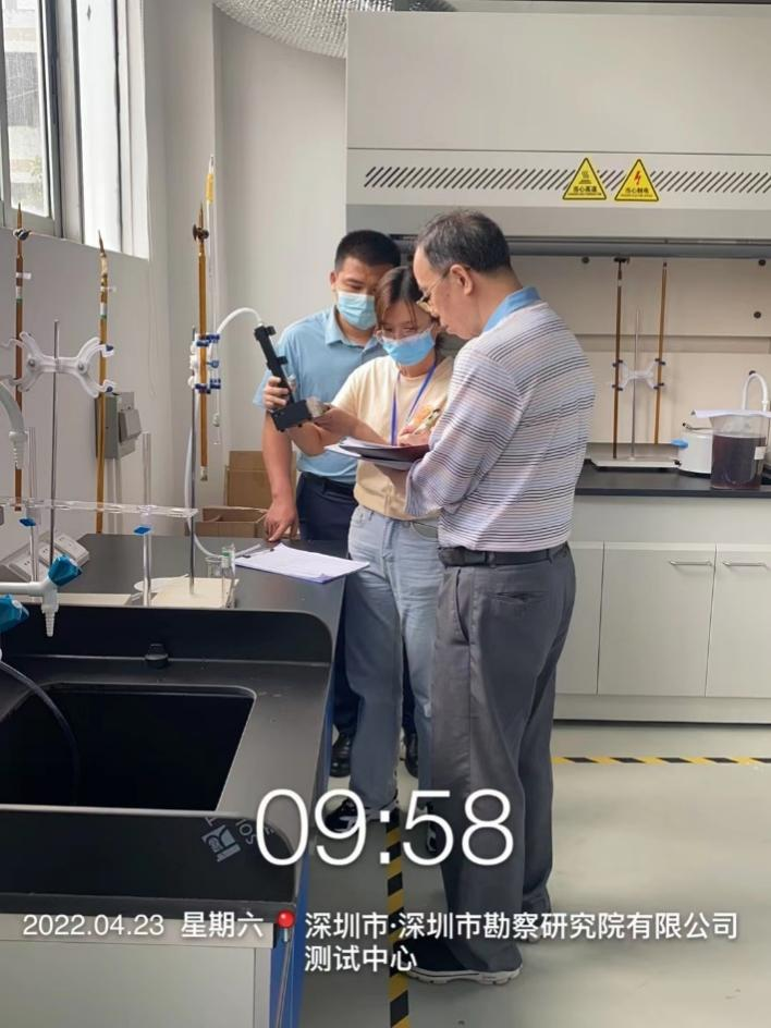 2022年4月23-24日,广东省市场监督管理局委派专家组对公司进行为期2天的资质认定(扩项)评审的现场评审。现场评审项目包括管理体系文件审查、现场试验、查阅模拟试验记录和报告、核查仪器设备配置、检测员考核、授权签字人考核等。