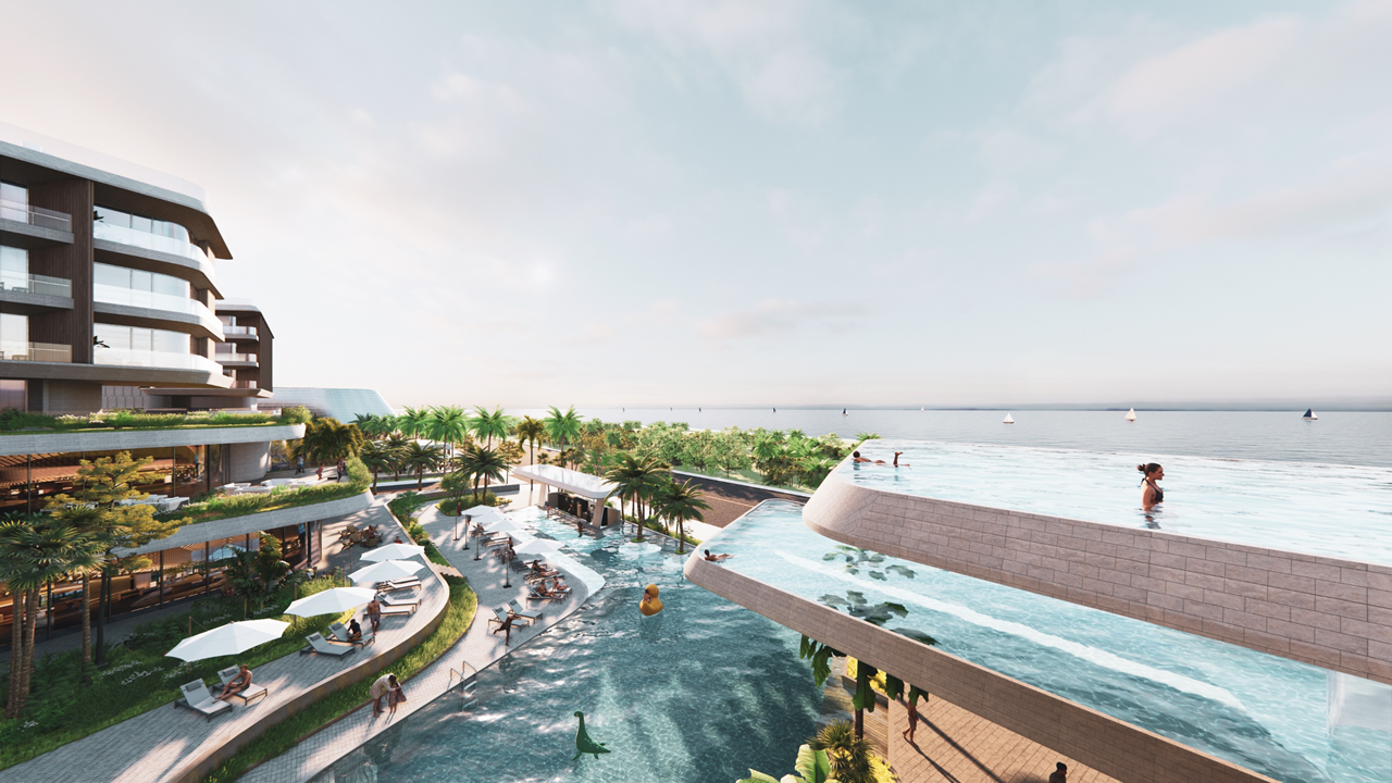 规划充分平衡城市设计风貌诉求和酒店开发运营需求,在各地块之间建立空间联系,整体建筑北低南高,退让海岸空间,实现建筑、景观、城市的渗透、共享。