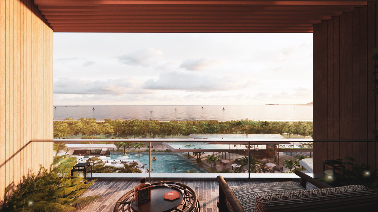 设计首先以“联水”引入一线海景资源,最大化景观价值,“享绿”创造可感知、可呼吸的生态环境,“融城”融合城市功能、空间及设施统一于建筑,“趣活”则以多元立体的功能及艺术文化设施,打造活力核心,从而创造疏密有序、尺度宜人的热带滨海生态。
