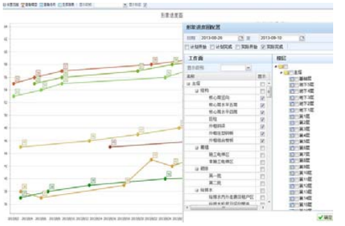 在施工进度管理的过程中,根据进度跟踪结果,需要进行计划进度和实际进 度的偏差分析。基于 BIM 的进度管理系统可以从不同层次、不同角度提供多种 可视化、形象化模拟分析。