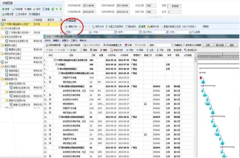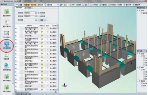 基于 BIM 的目标计划中,每一施工过程工作定义有工作计划开始时间、计 划完成时间、实际开始时间、实际完成时间,完成该工作的工程量、资源量等等。随着计划时间和完成时间的变化,系统可以自动重新调整和计算,修正目标计划和更新相应资源数据。