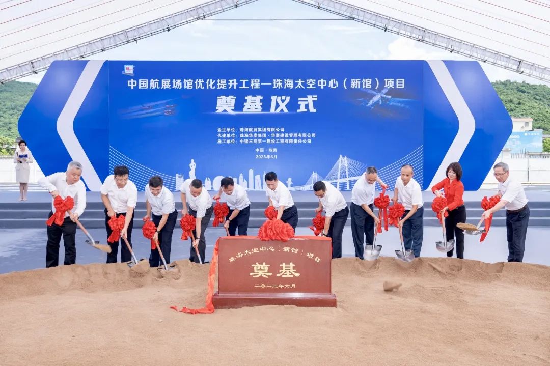 2023年6月27日,中国航展场馆优化提升工程开工仪式暨珠海太空中心新馆奠基仪式,在中建三局第一建设工程有限责任公司(简称“中建三一”,本会会员单位)承建的珠海太空中心(新馆)项目举行。