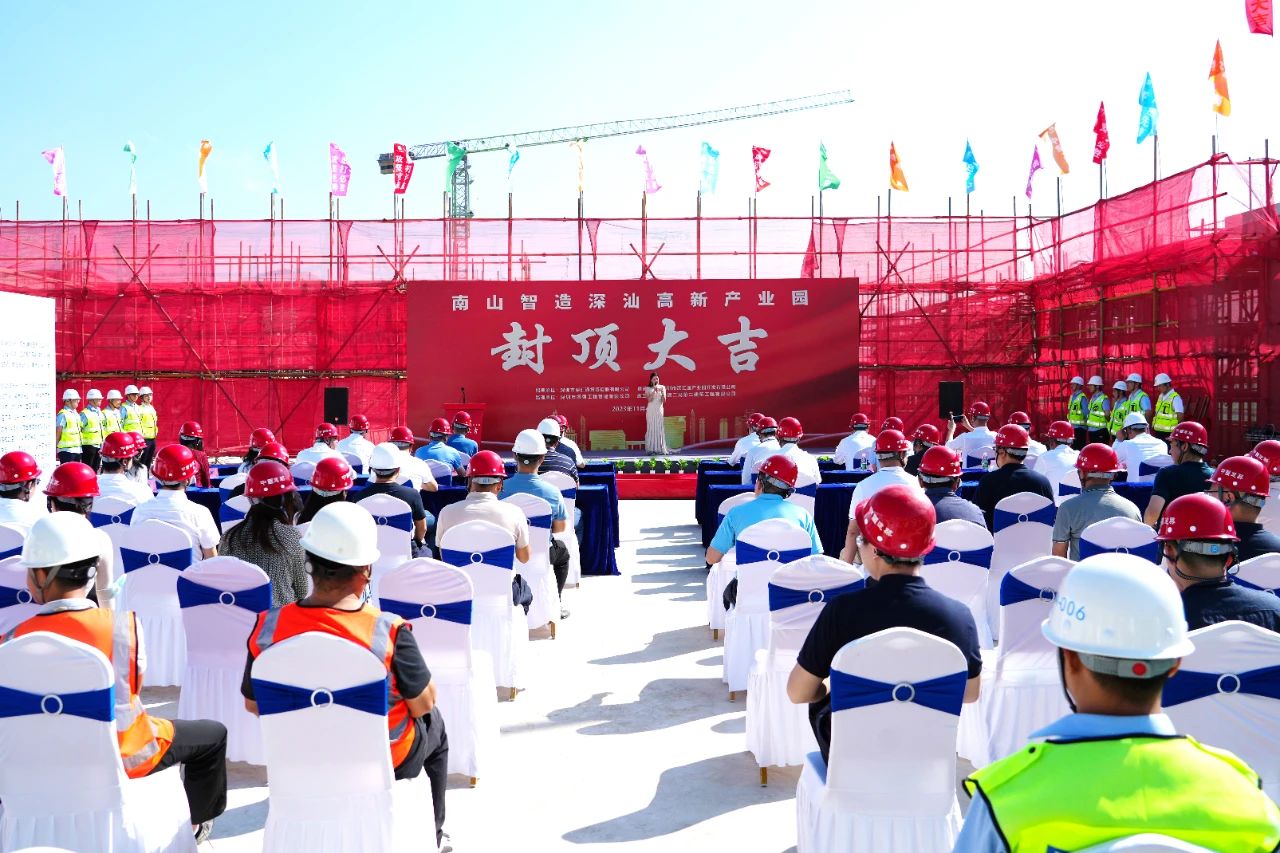 2023年11月4日,由中建二局第二建筑工程有限公司(简称“中建二局二公司”,本会会员单位)承建的深汕特别合作区首批“工业上楼”项目——南山智造·深汕高新产业园项目喜封金顶。南山区国资局党委书记、局长宋健军,中建二局二党委书记、董事长刘建钊等政府、业主及参建单位80余位领导同仁共同见证这一重要时刻。